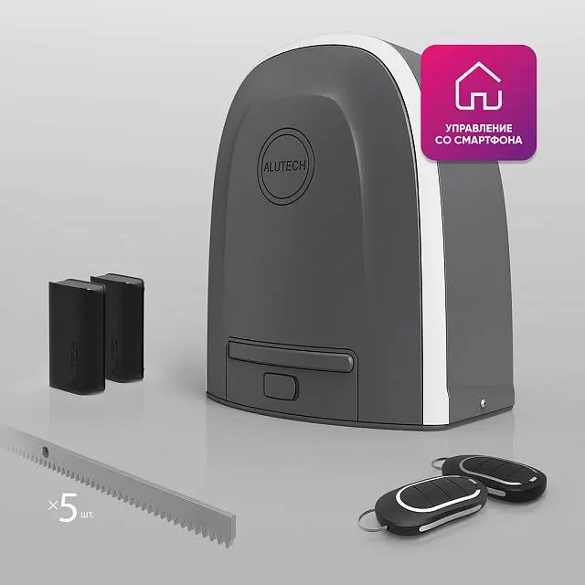 Умный привод для откатных ворот ALUTECH Roteo RTO-500MKIT-Sm + проводные фотоэлементы LM-L + сигнальная лампа SL-U + рейка ROA8 (5 шт.) + Wi-fi модуль WM-Sm