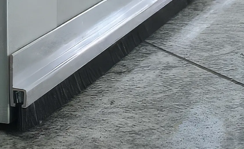 Гибкие щетинистые накладки монтируются по нижней кромке створки. Щётка повторяет рельеф поверхности и перекрывает щель. Плюсы: долговечность, устойчивость к влаге и грязи, сохранение вентиляции.