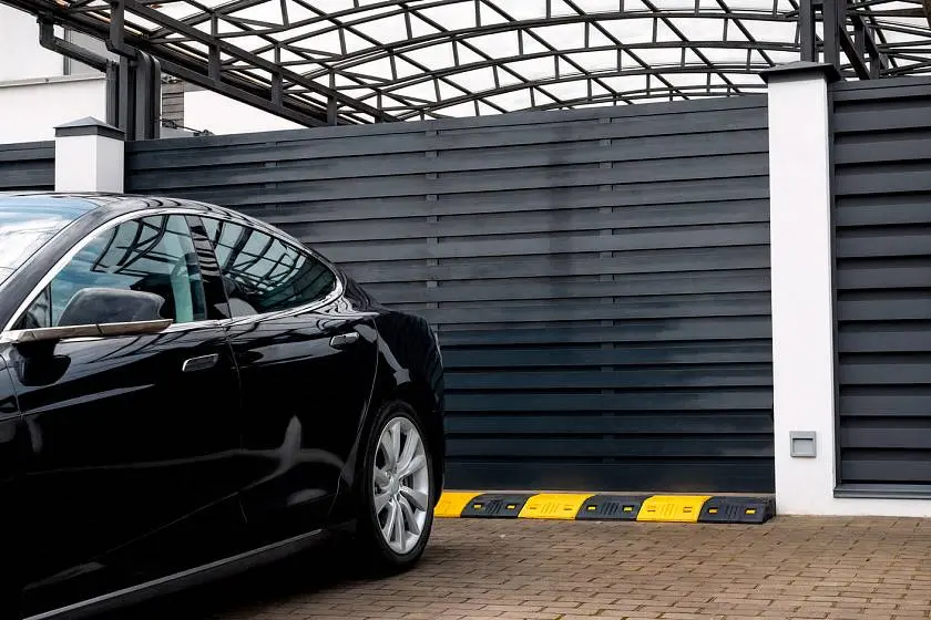 Современное решение для откатных ворот. При закрытии створки вниз опускается уплотнитель, который плотно перекрывает щель, а при открытии — убирается обратно. Удобно, эстетично, но дороже классических методов.
