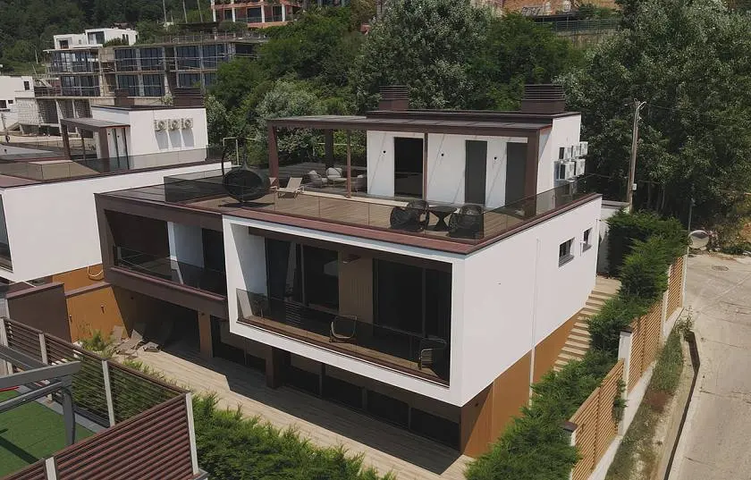 - Климатический комфорт. Алюминиевые системы защищают дом от перегрева летом и сохраняют тепло зимой. Это важно для влажного приморского климата.