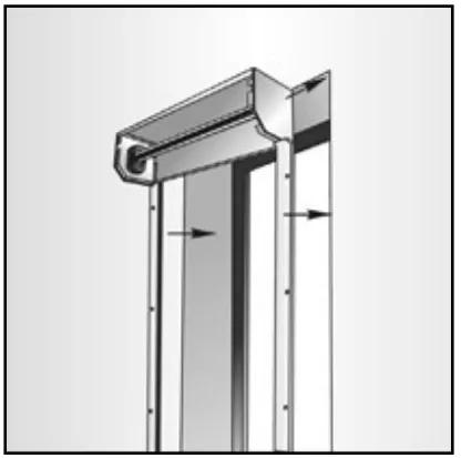 Соберите короб с боковыми крышками и направляющими. Затем приложите каркас к месту установки: шины при этом должны находиться строго вертикально, а короб — горизонтально. Проверьте плотность прилегания короба и шин к проему. Допустимы зазоры до 5 мм, а при больших значениях необходима доработка стен проема.