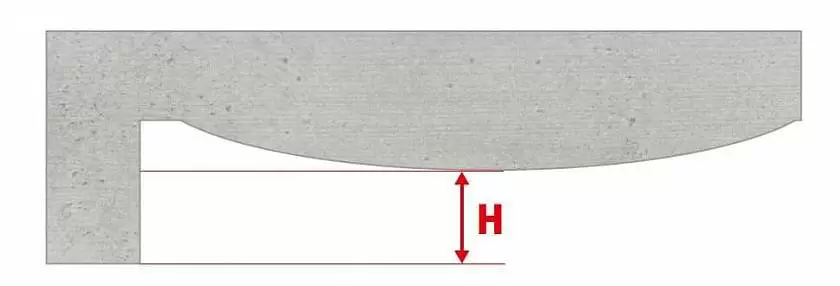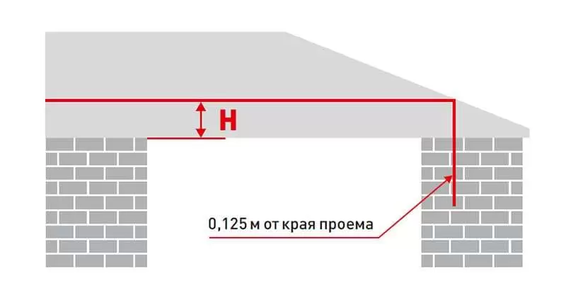 В таком случае замер перемычки необходимо производить в точке которая находится на расстоянии 125 мм от края проема по ширине. - Выпуклый потолок.