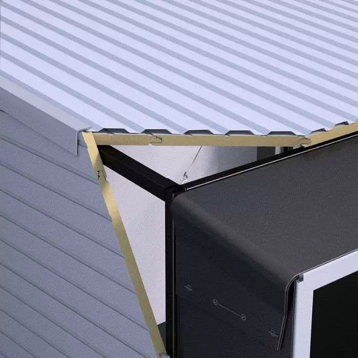При заказе перегрузочного тамбура ALUTECH DH с обшивкой профилированным листом или сэндвич-панелью в стандартный комплект поставки входят нащельники примыкания к стене, отливы по бокам площадки, уголки обрамления стыков крыши и стен. Эти элементы надежно защищают от сквозняков и осадков.