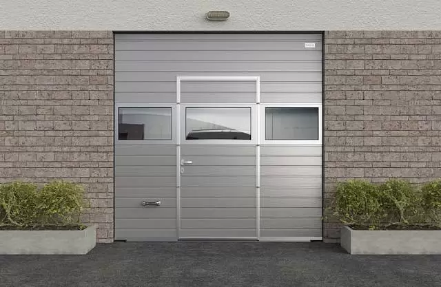 для отдельного входа-выхода. Дверь гармонично сочетается с гаражными воротами, придавая фасаду дома завершенный вид