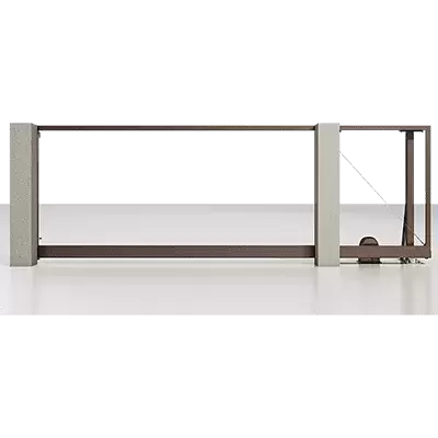 Совмещение направляющей шины с рамой в единый элемент увеличивает жёсткость конструкции и препятствует образованию перекосов. В направляющей шине предусмотрен «козырек» для фиксации зубчатой рейки и установки автоматики.