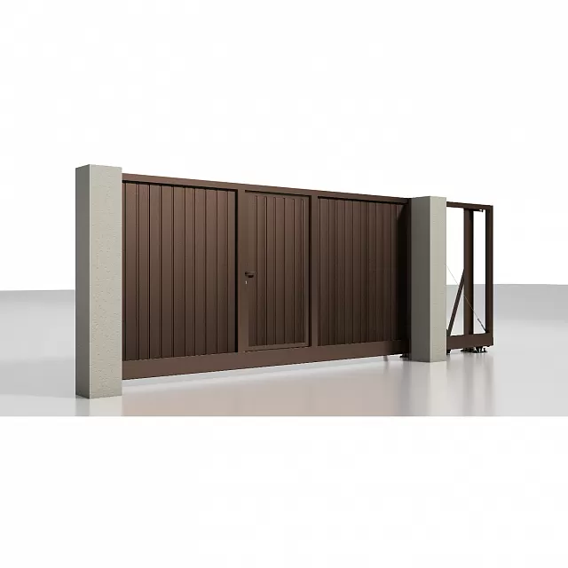 Откатные ворота ALUTECH Prestige 4000×2000 мм с электроприводом и встроенной калиткой