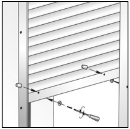 Установите стопоры для ограничения высоты подъема роллетного полотна. Для этого понадобится просверлить отверстия в концевом профиле.