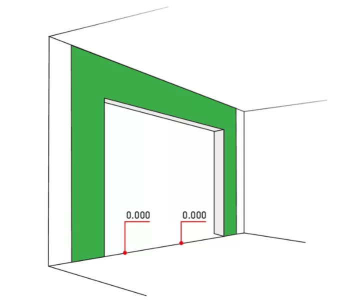 Перед замером следует определить нулевую отметку пола. В идеале устанавливать ворота в проем с уже готовым полом. Замер параметров необходимо производить с внутренней стороны помещения, т.к. с этой стороны будут монтироваться ворота.