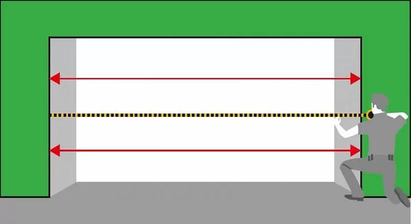 Перед замером следует определить нулевую отметку пола. В идеале устанавливать ворота в проем с уже готовым полом. Замер параметров необходимо производить с внутренней стороны помещения, т.к. с этой стороны будут монтироваться ворота.