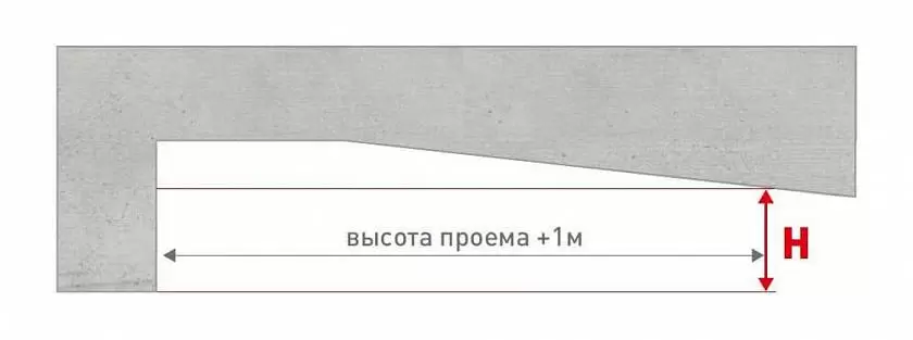 В таком случае за уровень потолка принимается нижняя точка на потолке, расстояние к которой равно высоте проема + 1000 мм. - Не вертикальная перемычка.