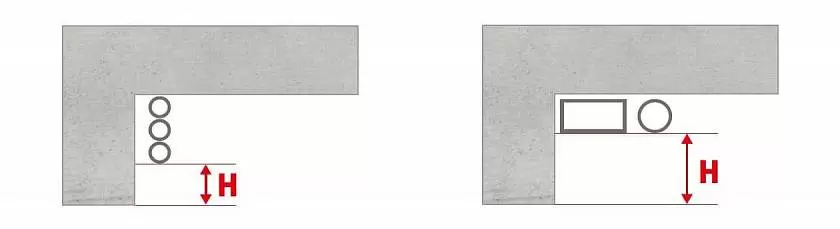 Важно: для установки ворот необходимо не менее 100 мм в зоне перемычки (оптимально — 210 мм) и не менее 125 мм в зоне боковых пристенков. В этих зонах не должно быть систем вентиляции, водоснабжения или отопления. Если полученные значения меньше минимальных, сообщите об этом при заказе ворот.