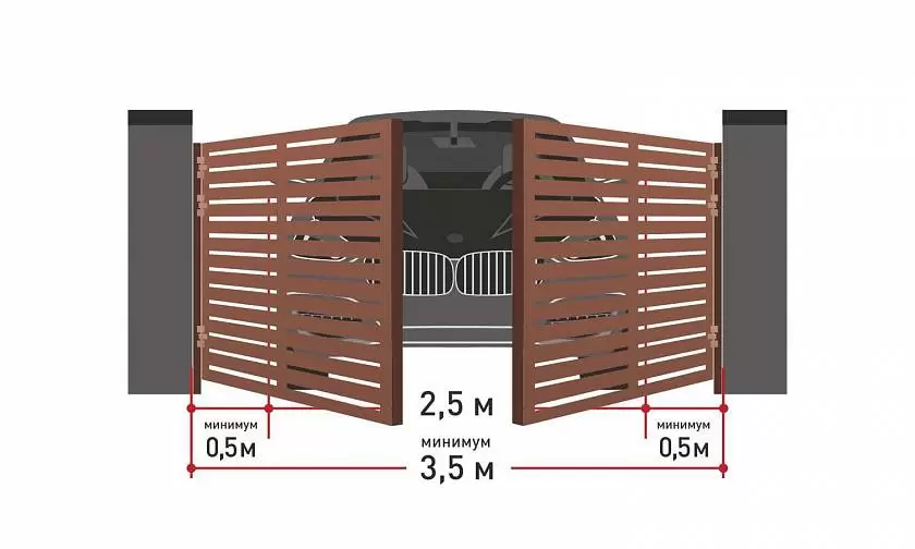 Для комфортного въезда/выезда с территории участка рекомендуется использовать следующие значения ширины проема: