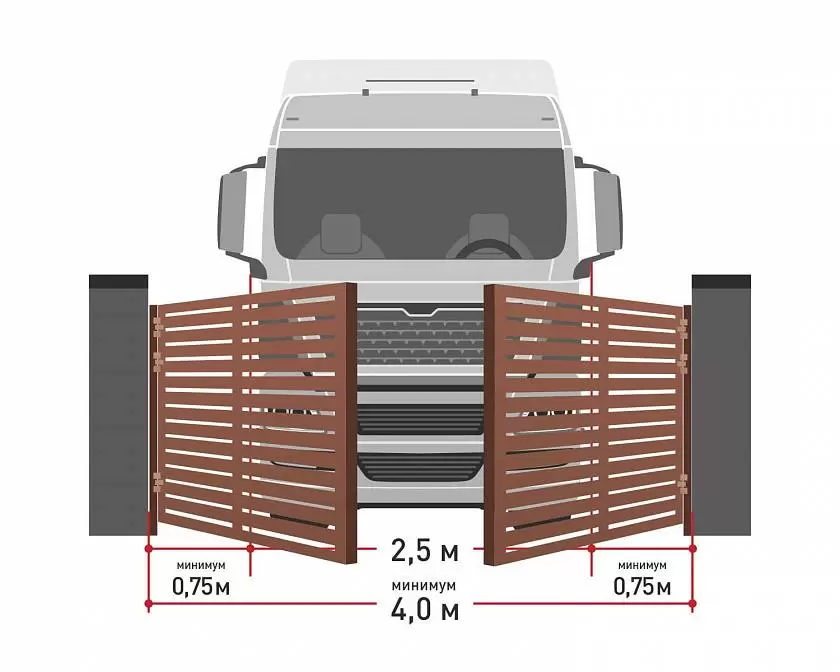 - Ширина проема для грузового автомобиля – минимум 4 м.