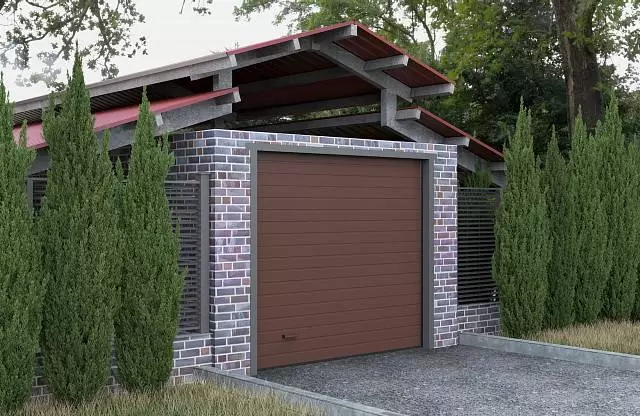 для отдельного входа-выхода. Дверь гармонично сочетается с гаражными воротами, придавая фасаду дома завершенный вид