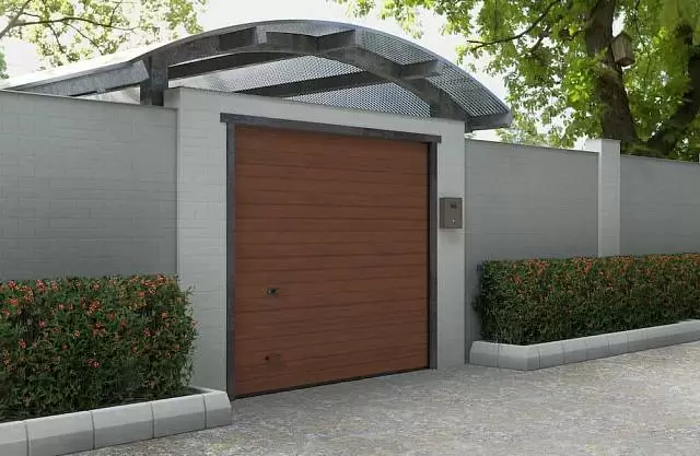 для отдельного входа-выхода. Дверь гармонично сочетается с гаражными воротами, придавая фасаду дома завершенный вид