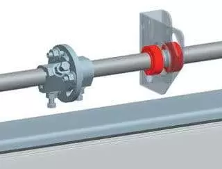 На промышленных воротах стопорные кольца устанавливаются с двух сторон промежуточного кронштейна на расстоянии 1‑2 мм до внутренней обоймы подшипника кронштейна. Стопорные кольца также могут быть установлены с наружной стороны боковых установочных кронштейнов, закрепленных к опорным стойкам, на расстоянии 1‑2 мм от обоймы подшипника кронштейна.