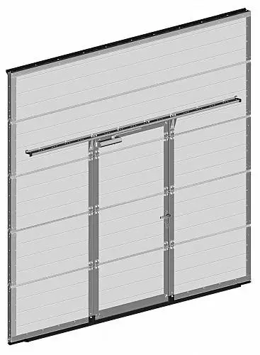 Применяется в помещениях с низкими потолками. Притолока — не менее 230 мм для ворот без калитки и не менее 250 мм для ворот с калиткой.