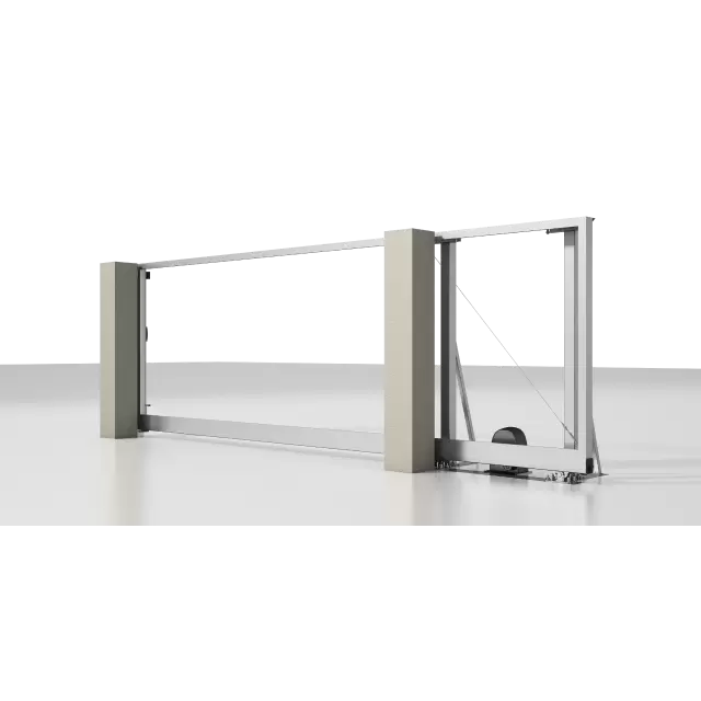 Рама: 96 мм. Комбинированное заполнение: сэндвич-панель L-гофр и разреженный профиль 37 мм. цвета «Серый антрацит» (RAL 7016). Автоматика ALUTECH Roteo